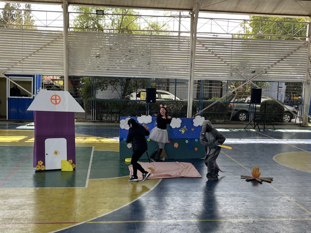 Los estudiantes de Kinder a Cuarto Básico disfrutaron felices de esta presentación, comprendiendo la importancia de leer siempre y además de ver en escena a sus profesoras. La actividad se desarrolló en un grato ambiente de entusiasmo.