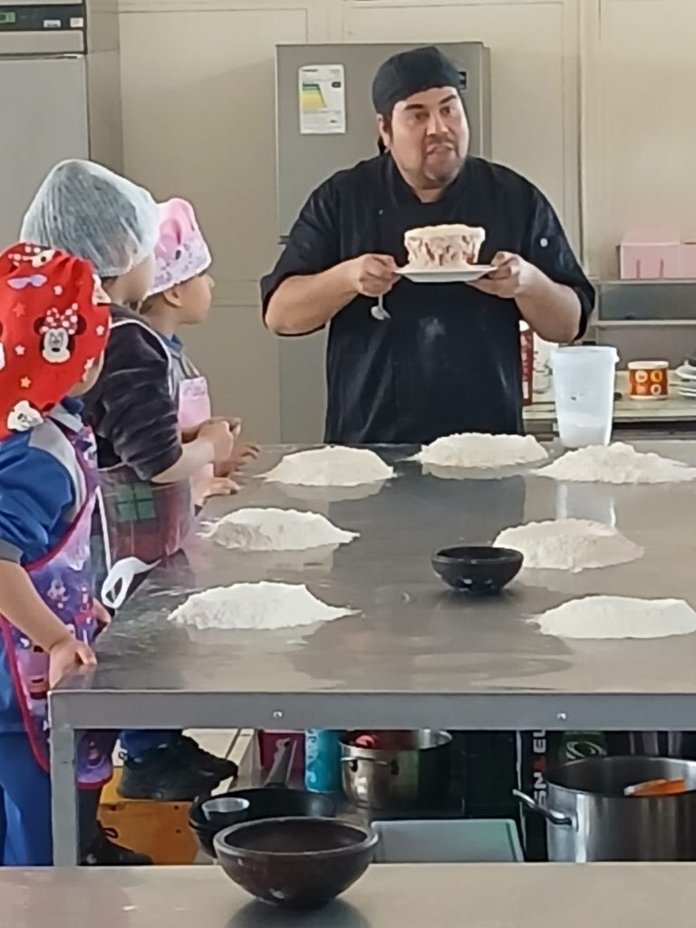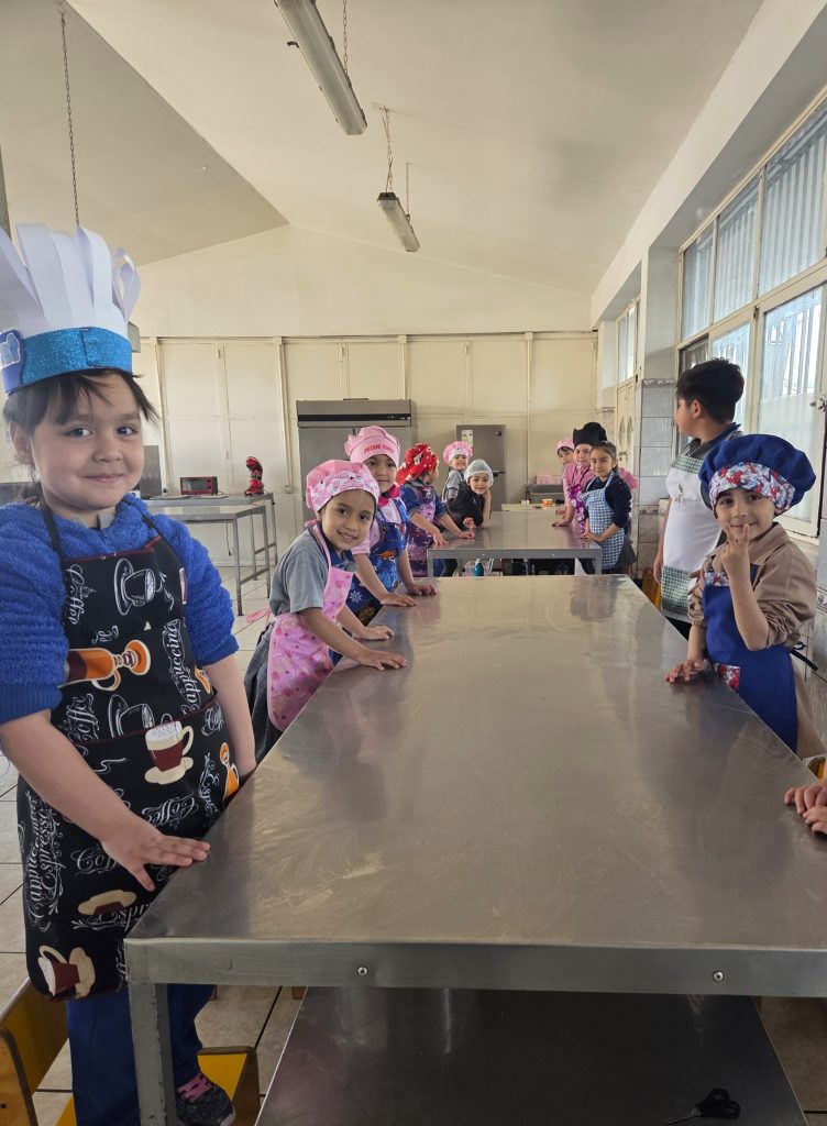 El día 29 de septiembre de 2025, los estudiantes de Kínder participaron de una entretenida clase en el taller de cocina de nuestro colegio. Junto al profesor y chef Jorge Carrillo.